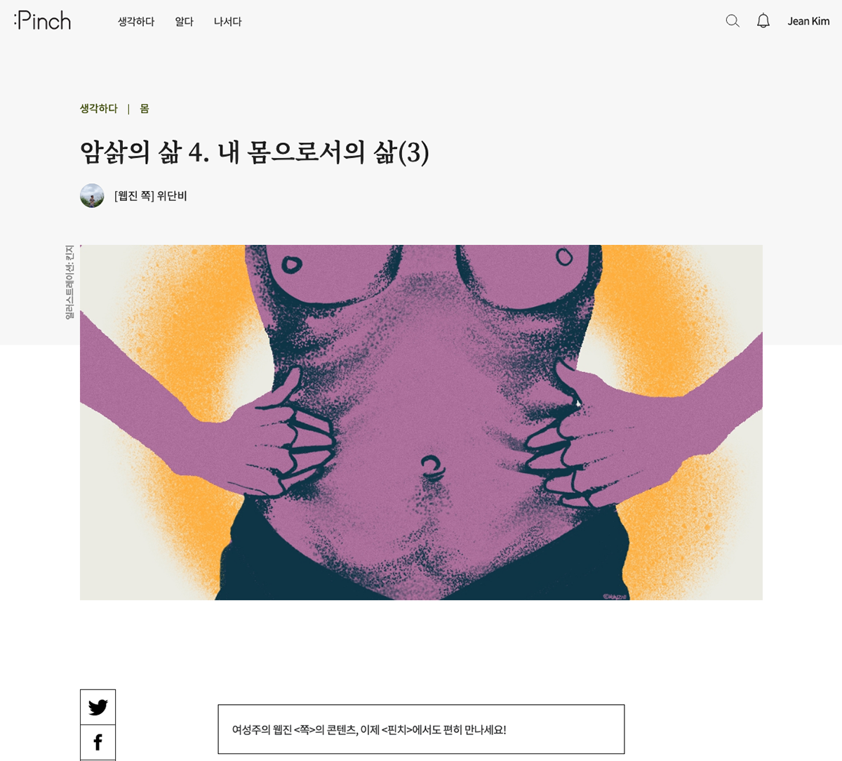 Editorial Illustration for Pinch, A Korean digital media for modern women. These articles are about body and life of a young millennial woman.